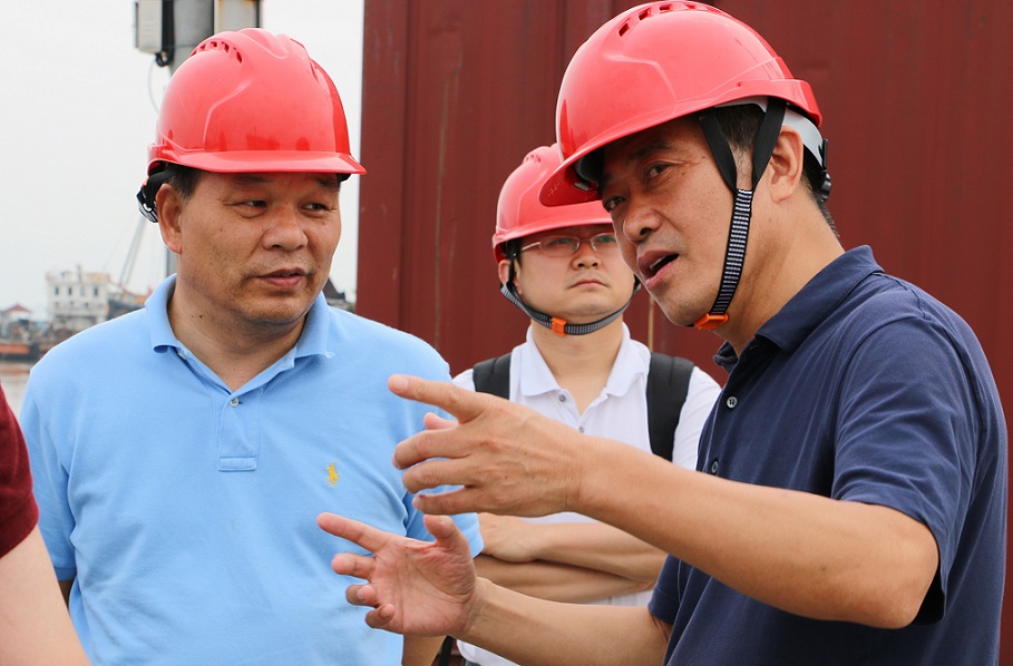 張善坤一行實(shí)地查看了口岸作業(yè)、海關(guān)H986控制室、岸線(xiàn)泊位等場(chǎng)所。